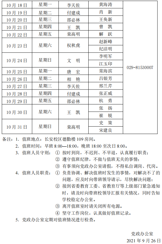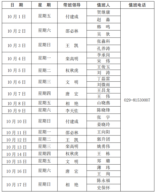 上一条:陕西学前师范学院长安校区值班表(2021年10月1日—10月31日)