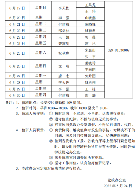 下一条:陕西学前师范学院长安校区值班表(2022年6月1日—6月30日)