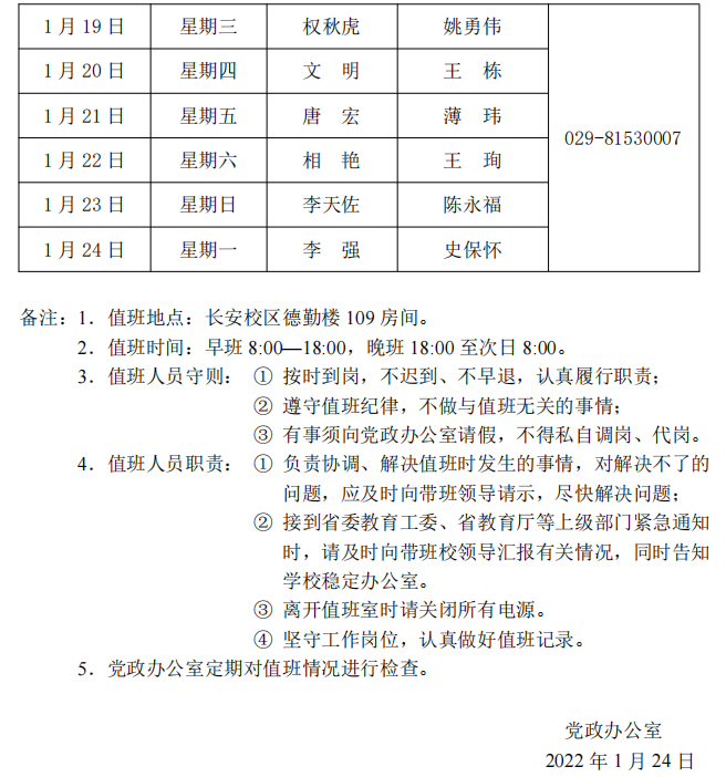 下一条:陕西学前师范学院长安校区值班表(2022年1月1日—1月24日)