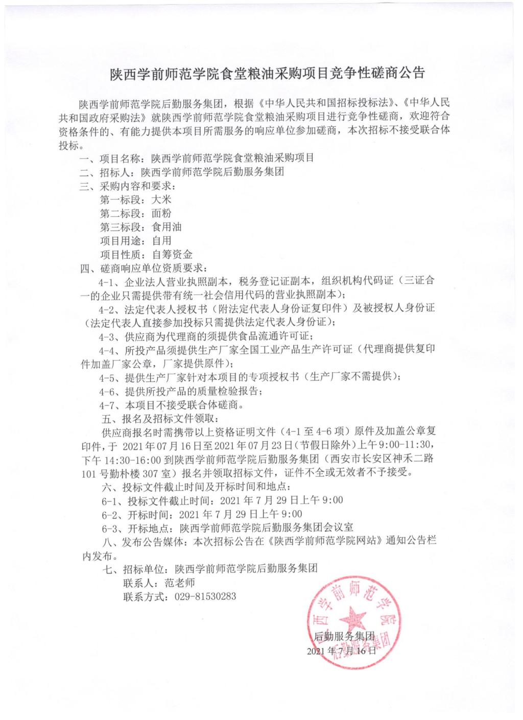 下一条:陕西学前师范学院食堂粮油采购项目竞争性磋商公告