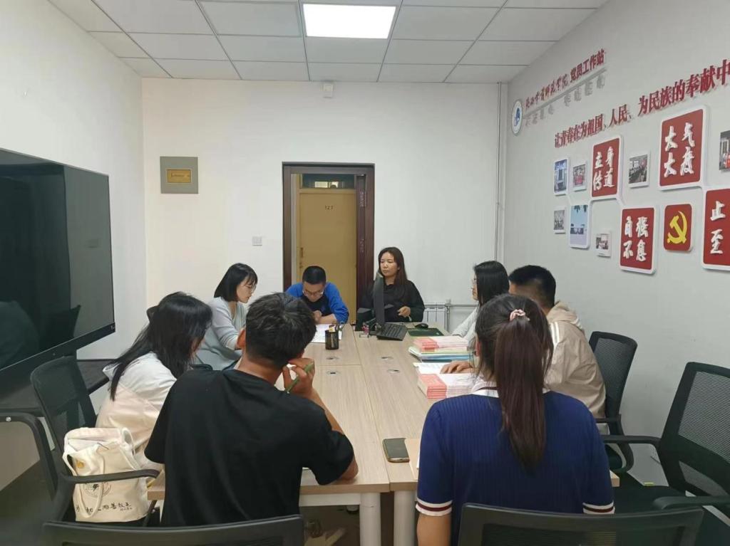 为落实学校“一站式”学生社区工作,推进学生管理与服务重心下沉到学生社区,2024年4月28日,教育科学学院学生工作队伍刘佩、郭建鹏、彭莉在“一站式”社区第十党员工作站召集学生组织团总支、学生会、学生党员代表开展学院迎评工作推进会。