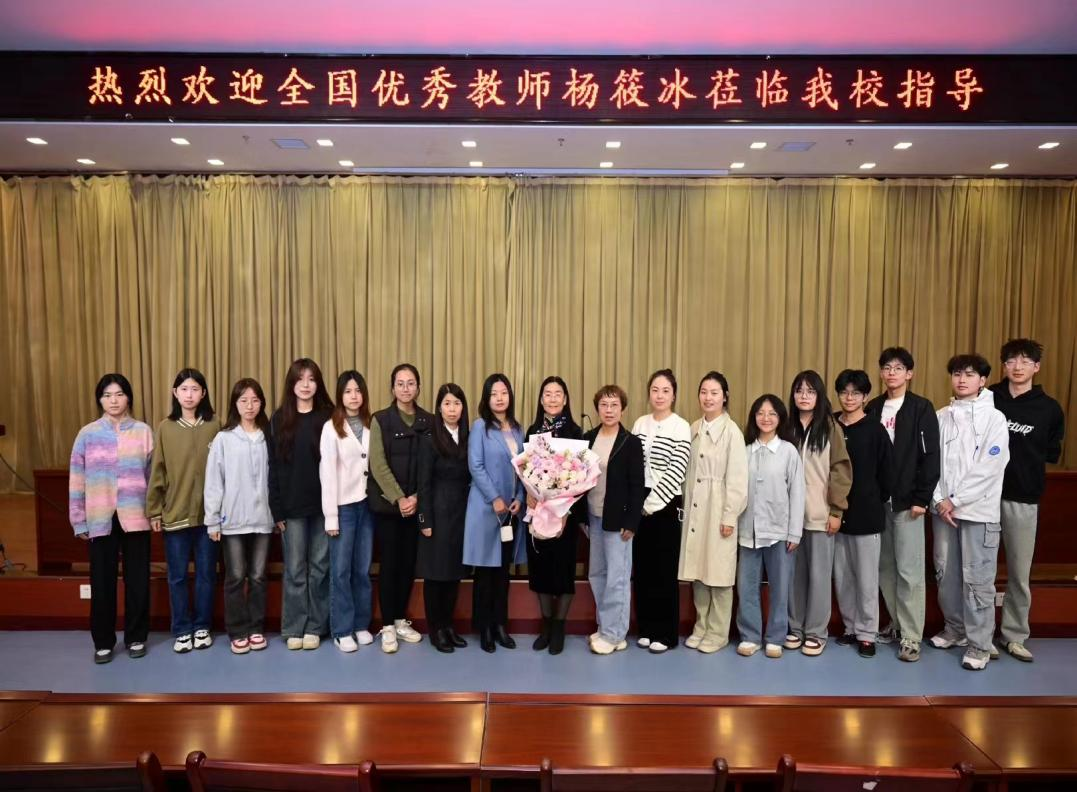 杨老师首先分享了她40年来躬耕教坛、潜心育人、扎根在教育一线的育人实践和感人事迹;因材施教的育人智慧、帮助学生成长的典型案例;追求进步不断向上,影响引领一批批教师成长的榜样故事。杨老师质朴又动情的讲述,让“新时代大先生”的观念深入人心,充满豪情的话语让教育家精神在师生们心中激荡。