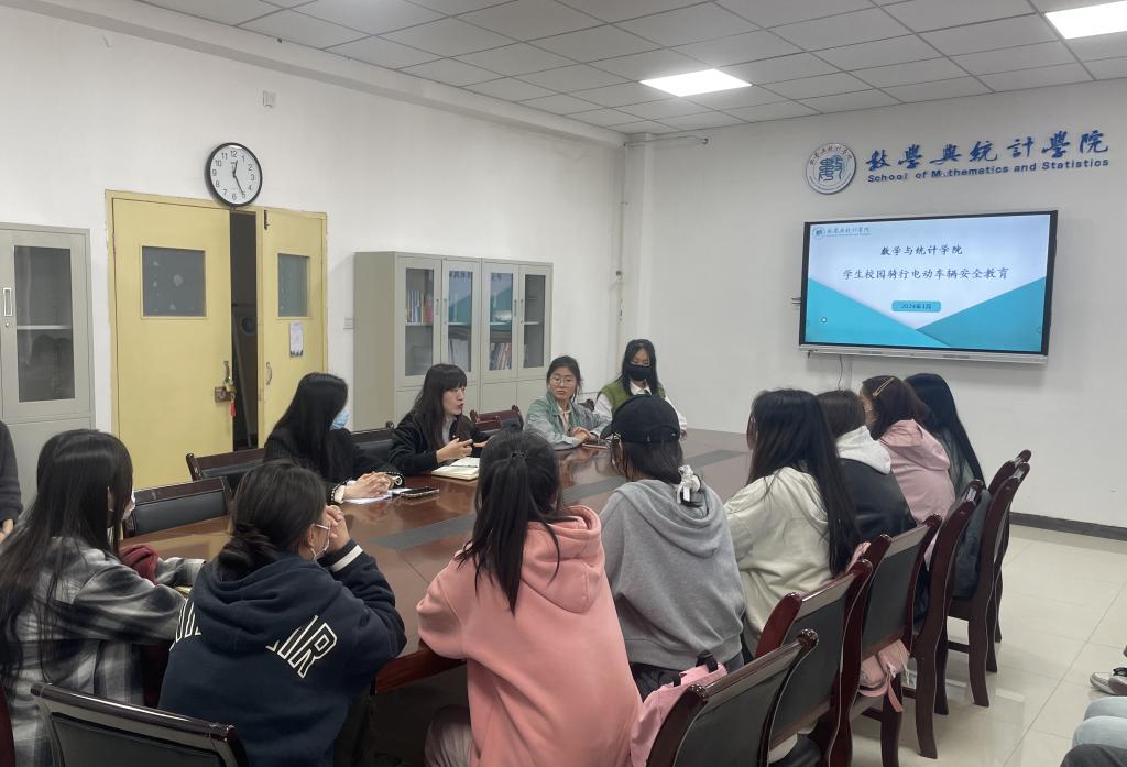 为进一步加强和规范校园电动自行车安全管理,维护和保障学生人身财产安全,通过前期摸排,建立台账,3月29日中午,数学与统计学院在积学楼D319会议室召开校园电动自行车专项安全教育会议,学院党委副书记、辅导员和骑行电动自行车的学生参加会议。