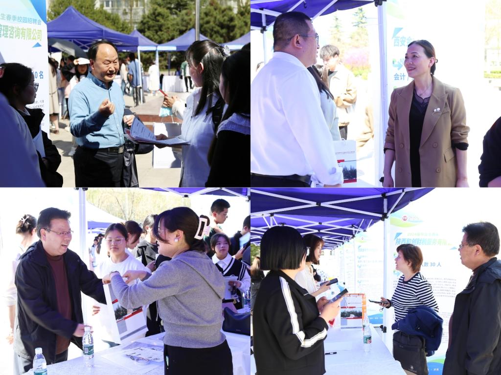 招聘会现场气氛活跃,学校党委书记邵必林、校长张健、副校长李天佐、副校长李明军、党委学工部部长薛晓娟、经济与管理学院班子成员莅临招聘会现场,与用人单位负责人面对面交流,深入了解企业概况、招聘需求和岗位要求;与现场的毕业生亲切交流,鼓励同学们做好充分准备,把握求职机遇,实现积极就业。西安市代理记账协会秘书长张新强也来到现场,与此次参会的会员单位、应聘毕业生沟通交流,听取会员单位对供需双选活动的相关建议,鼓励学院应届毕业生及时了解市场需求和行业动态,主动抓住春招活动中的宝贵机会。
