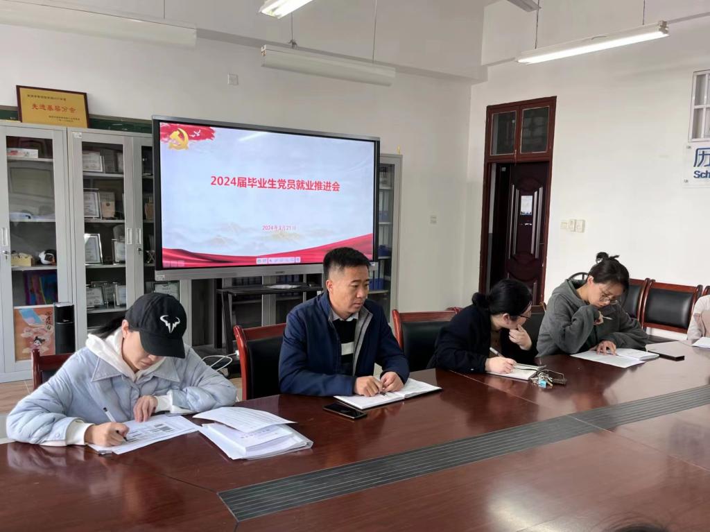 为扎实推进学院就业工作,充分发挥毕业生党员在就业工作中的先锋模范作用,推动“就业育人”教育工作,历史文化与旅游学院3月21日召开2024届毕业生就业工作推进会,学院党委书记王伟、副书记景艳、毕业生辅导员吉辉以及全体毕业生党员参加了会议,会议由学生党支部书记王黎主持。