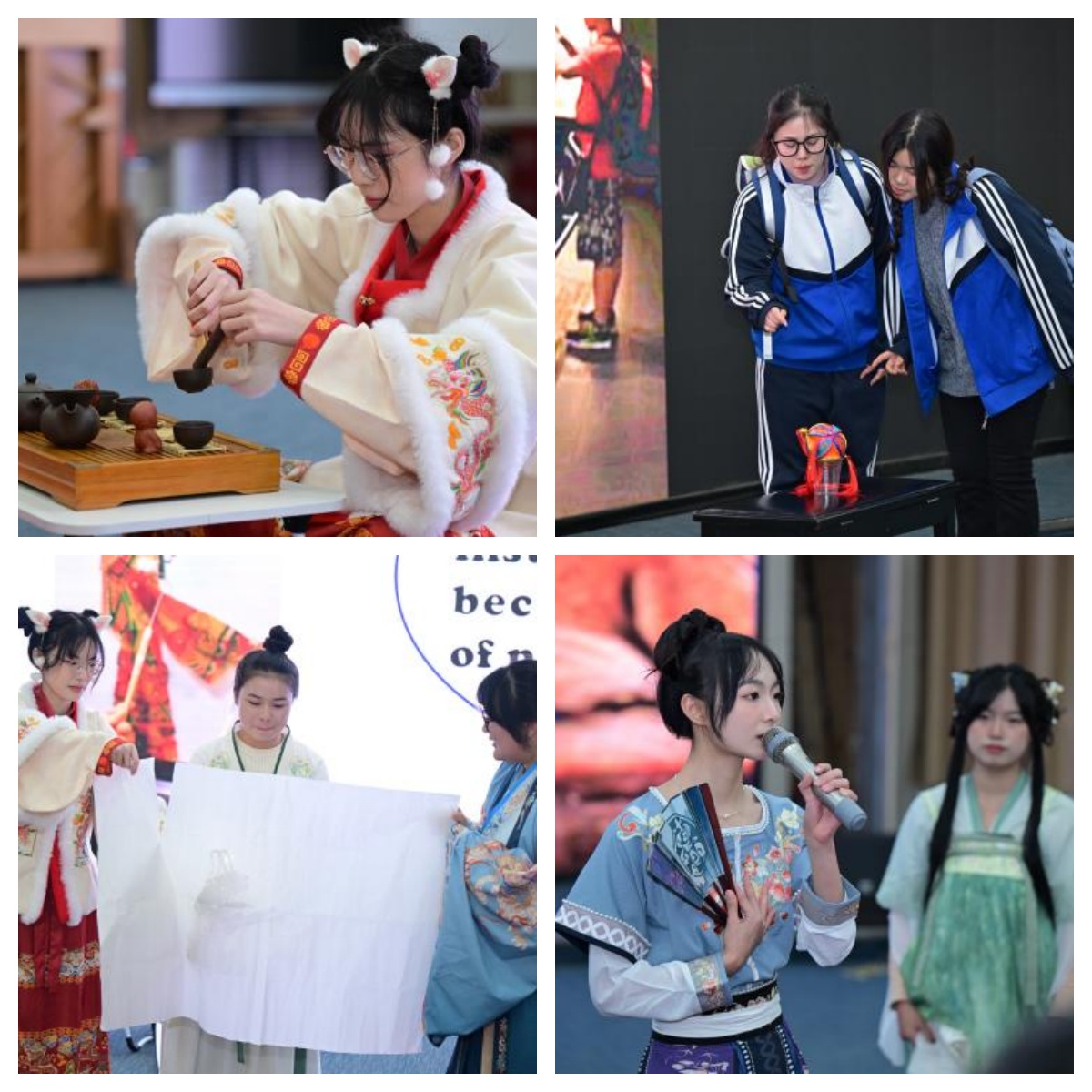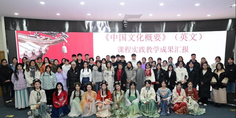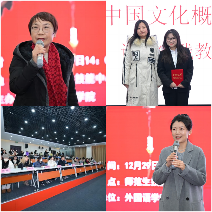 2023年12月29日下午14:00,外国语学院进行了《中国文化概要》(英文)课程实践教学成果汇报展示,活动由承担本门课程的主讲教师张莉娟副教授和高倩老师策划、组织,活动在师范生技能中心举行。外国语学院张慧军院长、高海燕书记、李娟副教授、课程团队成员以及2021级学生参加了此次汇报展示活动。