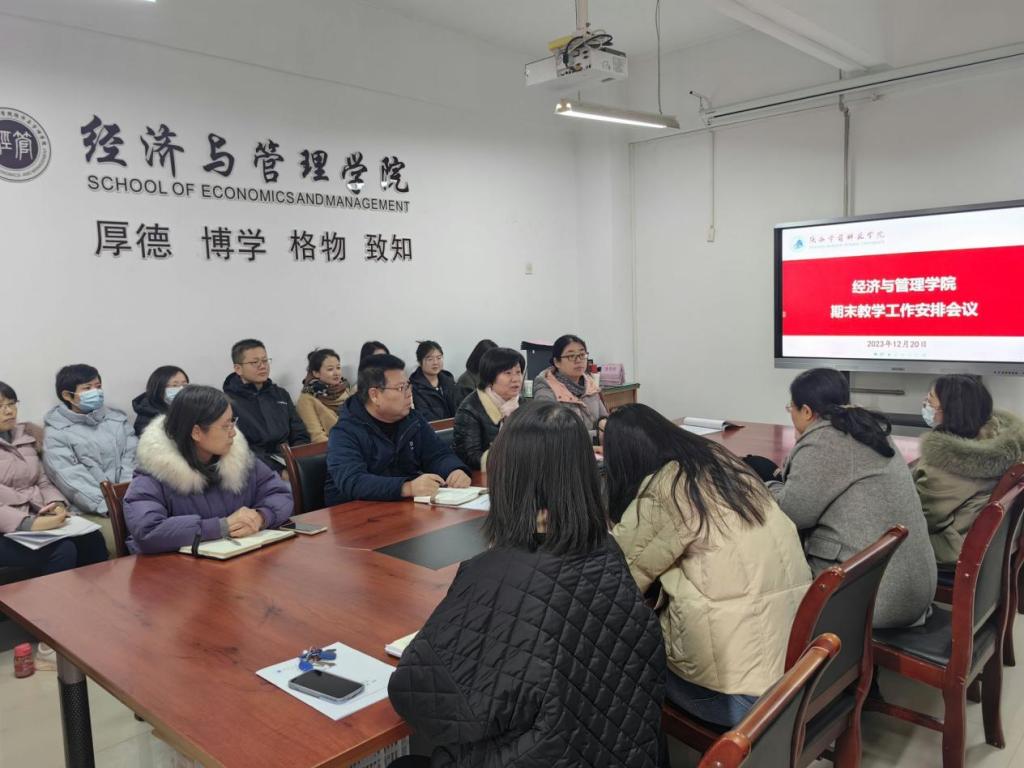 12月20日下午,经济与管理学院在博文楼B411会议室召开了期末教学工作会议,本次会议紧紧围绕后期教学运行、试卷管理、考试要求、毕业论文开题工作、实践教学基地建设、创新创业教育教学改革、教材遴选等期末教学相关工作展开,为学院持续做好本科教学工作奠定基础。会议由崔洁院长主持,全体教师参会。