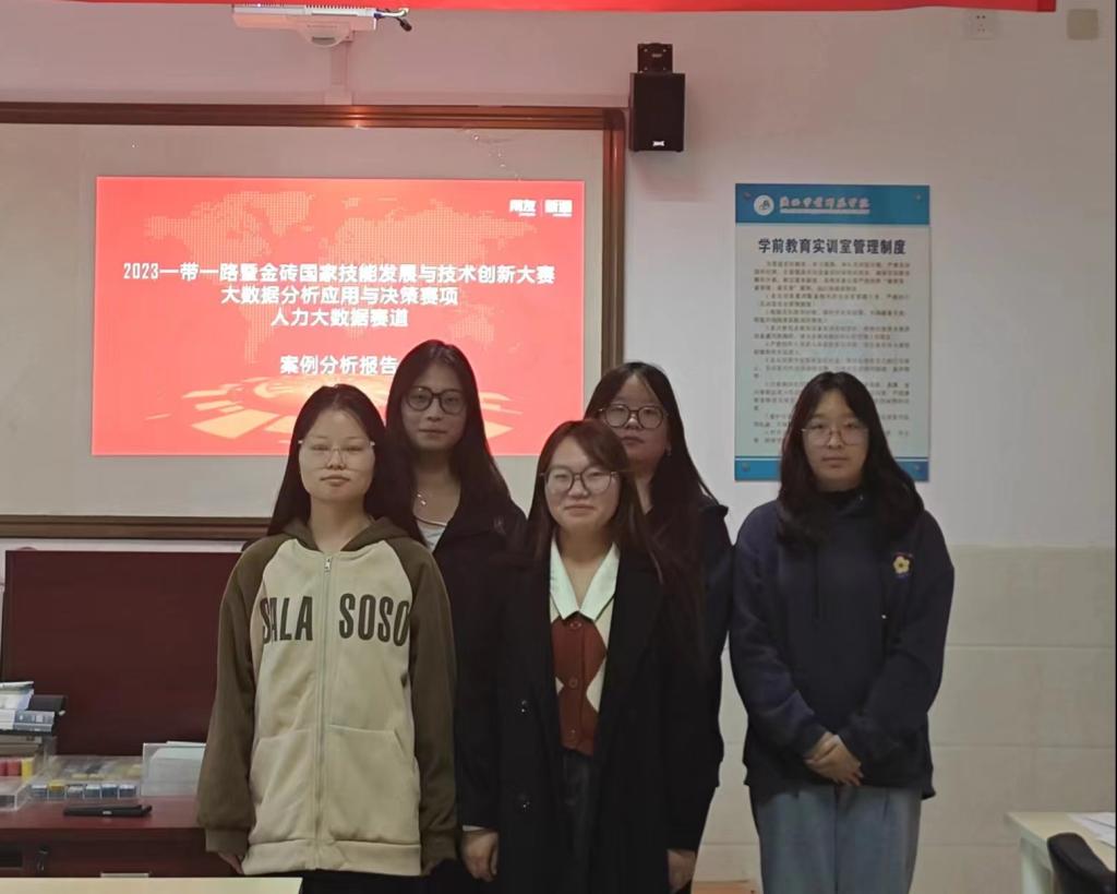 2023年11月2日至4日,第七届一带一路暨金砖国家技能发展与技术创新大赛大数据分析应用与决策赛项人力大数据陕西省选拔赛在线上举行。金砖国家技能发展与技术创新大赛是2017年金砖国家最高领导人会晤筹备委员会认可、经中华人民共和国外交部备案、金砖国家工商理事会批准的国际大赛。本届比赛共有陕西师范大学、西安石油大学、西安财经大学等高校选送的28支队伍参赛。在学院精心组织和周密部署下,经过时媛、梅林晨两位老师的认真指导,我院8名学生经过层层选拔,脱颖而出,陕西学前师范学院1队(员啸畅、李嘉琪、任乐、班俊)获得一等奖并推荐参加国赛,陕西学前师范学院2队(高雅、王娜、赵子涵、高欢)获得优秀奖,时媛、梅林晨2位老师获得优秀指导教师。