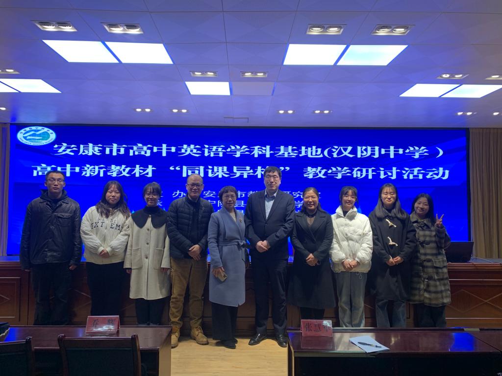 11月14日,由安康市教学研究室主办、宁陕中学承办的安康市高中英语学科基地新教材“同课异构”教学研讨活动在宁陕中学隆重举行。陕西学前师范学院外国语学院张慧军院长一行3人、安康市教研室英语教研员汪建群老师、汉阴中学英语学科基地领衔人李琰玲老师、宁陕中学党委书记王国礼等学校领导以及基地成员校英语教师共计50余人齐聚一堂,问道课堂,共同研究。外国语学院特别邀请英语专业校外一线指导教师、陕西省教学能手、西安市第二十六中学英语教研组长任涛老师参加此次活动,来自外国语学院在汉阴中学实习的6名英语专业学生也来到宁陕中学全程观摩了活动。