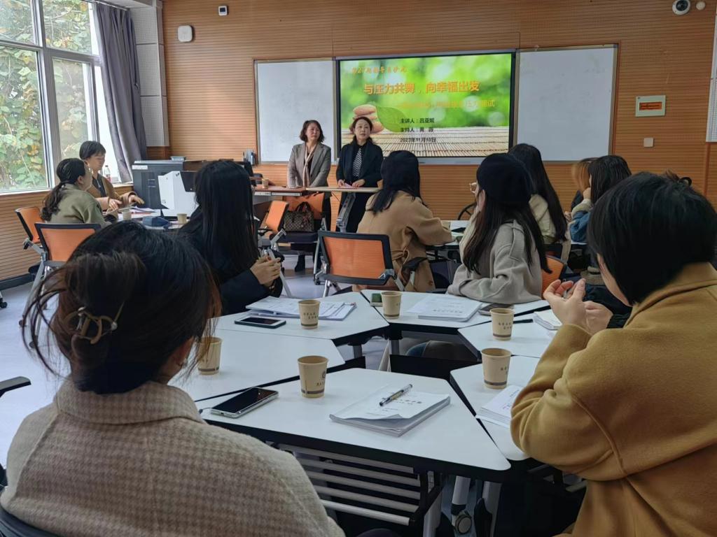根据党委学工部辅导员沙龙工作安排,2023年11月10日,由党委学工部主办,信息工程学院承办的《与压力共舞 向幸福出发—-高校教师心理健康及压力调试》主题辅导员沙龙在博文楼C205成功举办。信息工程学院党委副书记主持,信息工程学院、音乐学院、经济与管理学院党委副书记、全体辅导员及心理委员代表参加讲座。
