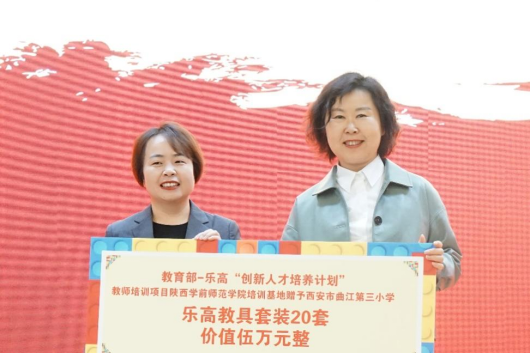 仪式上,杨令平院长代表“乐高—教育部创新人才培养计划”培训基地为曲江三小授牌“实践基地”,刘炜将乐高教育总部提供的价值5万元20套乐高教具现场赠送交接给曲江三小。