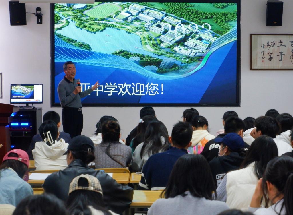 三亚中学成立于2021年6月,是三亚市引进“两校一园”教育战略发展的重点项目,是一所十二年一贯制的寄宿制学校,学校师资力量雄厚,管理团队和专任教师均由海口中学整体派出,是集网络化、数字化、智能化、个性化为一体的数字化校园。三亚中学的副校长辛老师介绍了海南三亚独特的地理风光、人文底蕴;介绍了三亚中学附属幼儿园的整体情况如建校历史、办园规模、校园风光、师资力量、教师待遇、发展前景等等。他真诚欢迎2024届学前教育专业毕业生加入三亚中学附属幼儿园,在未来的工作岗位上不断历练完善自己,实现职业理想。与会的毕业生就相关的个人成长空间、薪资待遇等与用人单位进行互动交流。