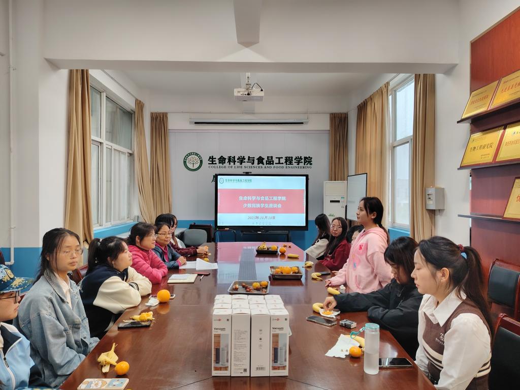 为深入学习贯彻党的二十大精神和中央民族工作会议精神,铸牢大学生中华民族共同体意识,促进各民族学生交流交往交融,进一步加强我院少数民族学生的教育管理服务工作,10月18日下午,生命科学与食品工程学院在2教C202召开少数民族座谈会。学院党委副书记、辅导员以及少数民族学生代表参加了座谈会。会议由辅导员黄秀玲主持。