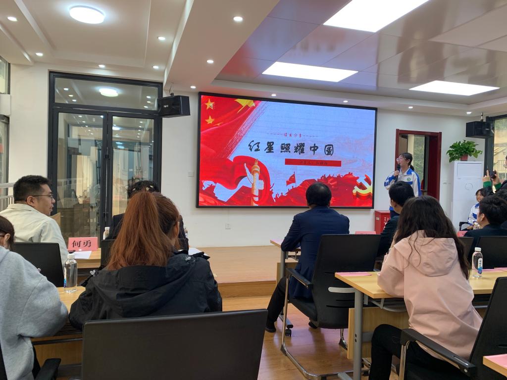 第一部分主要由长安区第三初级中学阅读社团的学生朗读“红字照耀中国”一书的经典篇章,其次两名中学生分别从“红星照耀中国”创作的历史背景、重点人物形象、阅读启发等三个方面分享了个人的阅读感悟,重点分享了中国共产党领袖和红军将领的人格魅力和光辉形象。长安区第三初级中学指导教师进行了点评。