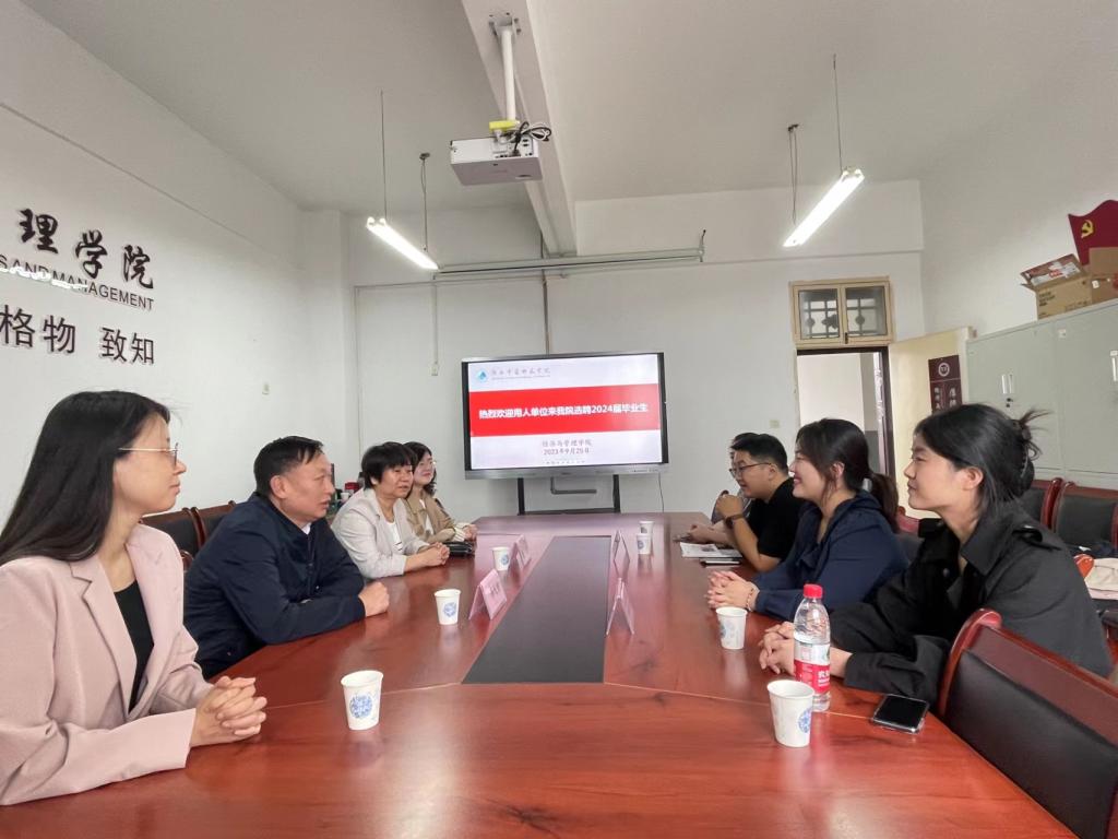 在招聘会开始前,副校长李天佐、经济与管理学院院长崔洁、学院党委副书记陈璐与参会企业代表在博文楼B411会议室举行了见面会。会上,李天佐副校长简要介绍了学校发展历史、办学特色、专业设置等情况,并诚挚欢迎各用人单位与相关院系开展深度合作。崔洁院长详细介绍了财务管理专业近年来的发展情况与人才培养成效,并希望以此次专场招聘活动为契机,校企双方能够进一步拓宽合作领域,实现校企协同育人,共同服务地方经济发展。在见面后结束后,与会企业通过现场宣讲、发放宣传材料、面对面交流等方式在博文楼B3阶梯教室向参会的毕业生先后介绍了企业发展历程、薪资待遇、职位晋升、行业发展前景等情况,帮助学生全方位了解企业用人需求和发展方向。在宣讲环节结束后,与会企业现场收取了毕业生个人简历,并逐一开展现场面试。