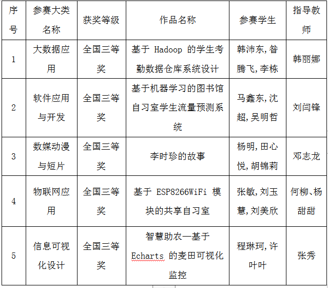 近日,由教育部高等学校计算机类专业教学指导委员会等四部委及中国教育电视台联合主办的第十六届中国大学生计算机设计大赛全国总决赛落下帷幕。本次赛事中共有895所本科院校的 5758 件作品推选参赛。信息工程学院在西北赛区中共有25件作品获奖(一等奖4项、二等奖3项、三等奖18项),最终有5件作品被推选参加国赛,且取得丰硕成果。具体获奖名单如下(详见比赛官方网址:http://jsjds.blcu.edu.cn/info/1042/1836.htm)。