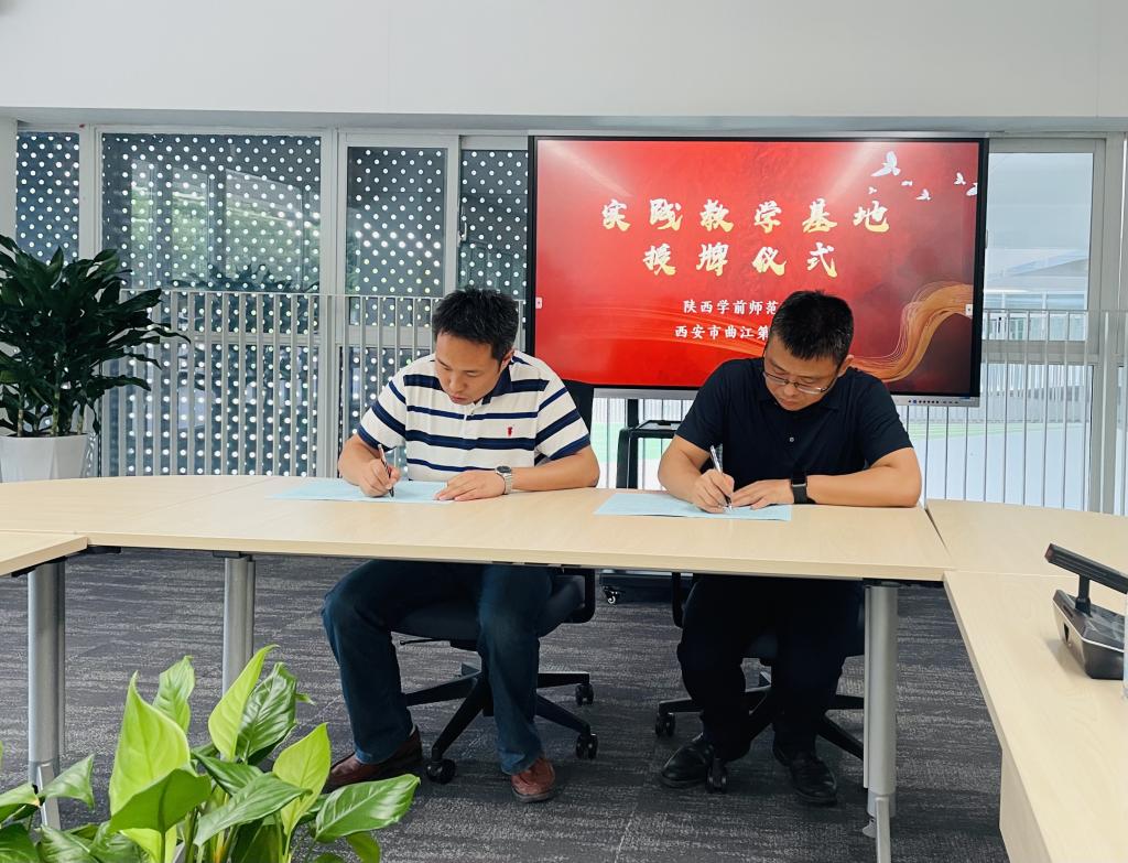最后,潘炳超副院长与龚哲勇副校长代表双方签署了合作协议,并举行授牌仪式。签约仪式结束后,龚哲勇副校长带领潘炳超副院长一行参观了西安市曲江第七小学的校园。