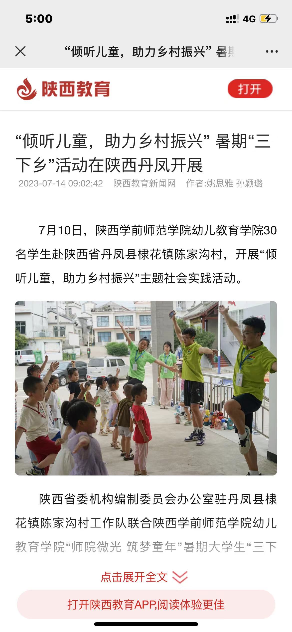 4.7月13日《陕西教育新闻网》 “倾听儿童,助力乡村振兴” 暑期“三下乡”活动在陕西丹凤开展