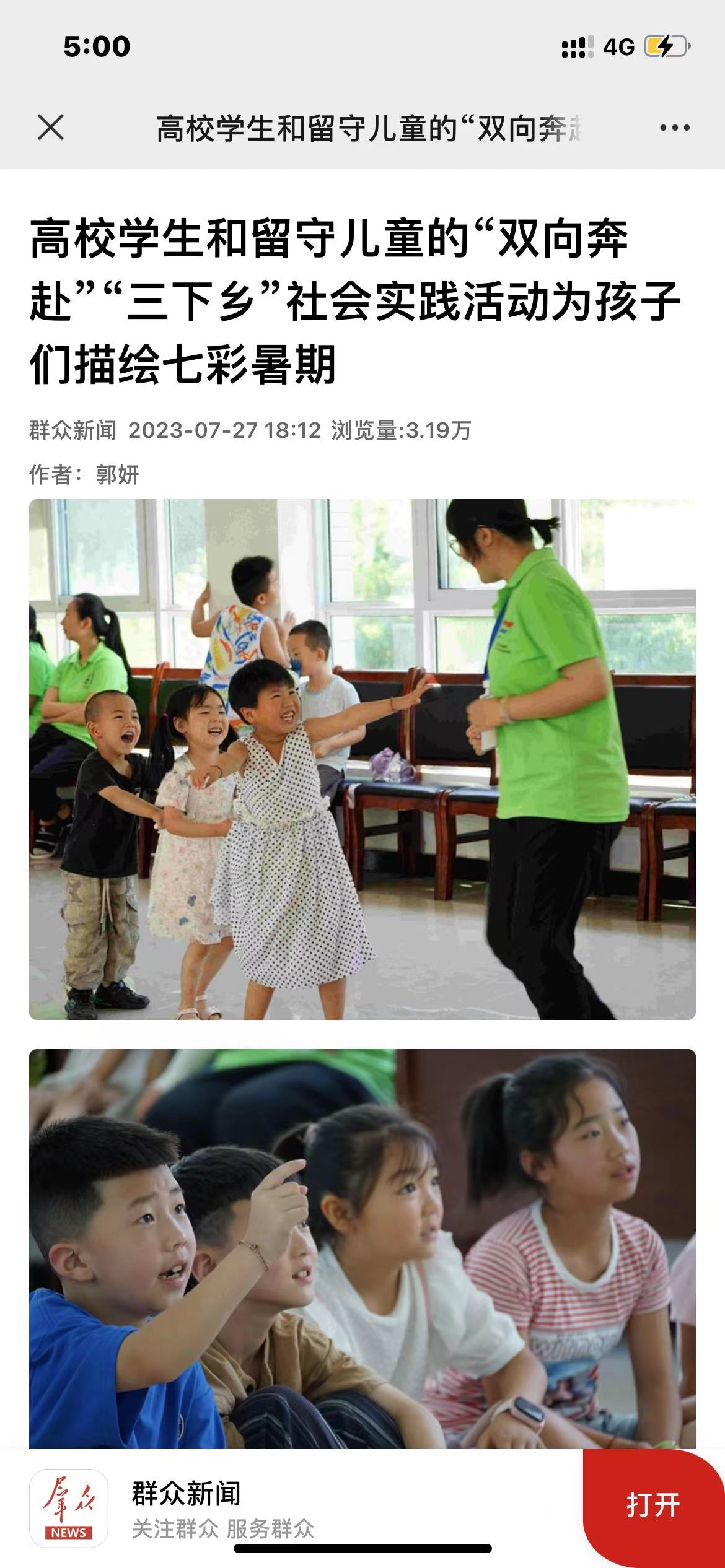 2.7月27日《群众新闻》 高校学生和留守儿童的“双向奔赴”“三下乡”社会实践活动为孩子们描绘七彩暑期