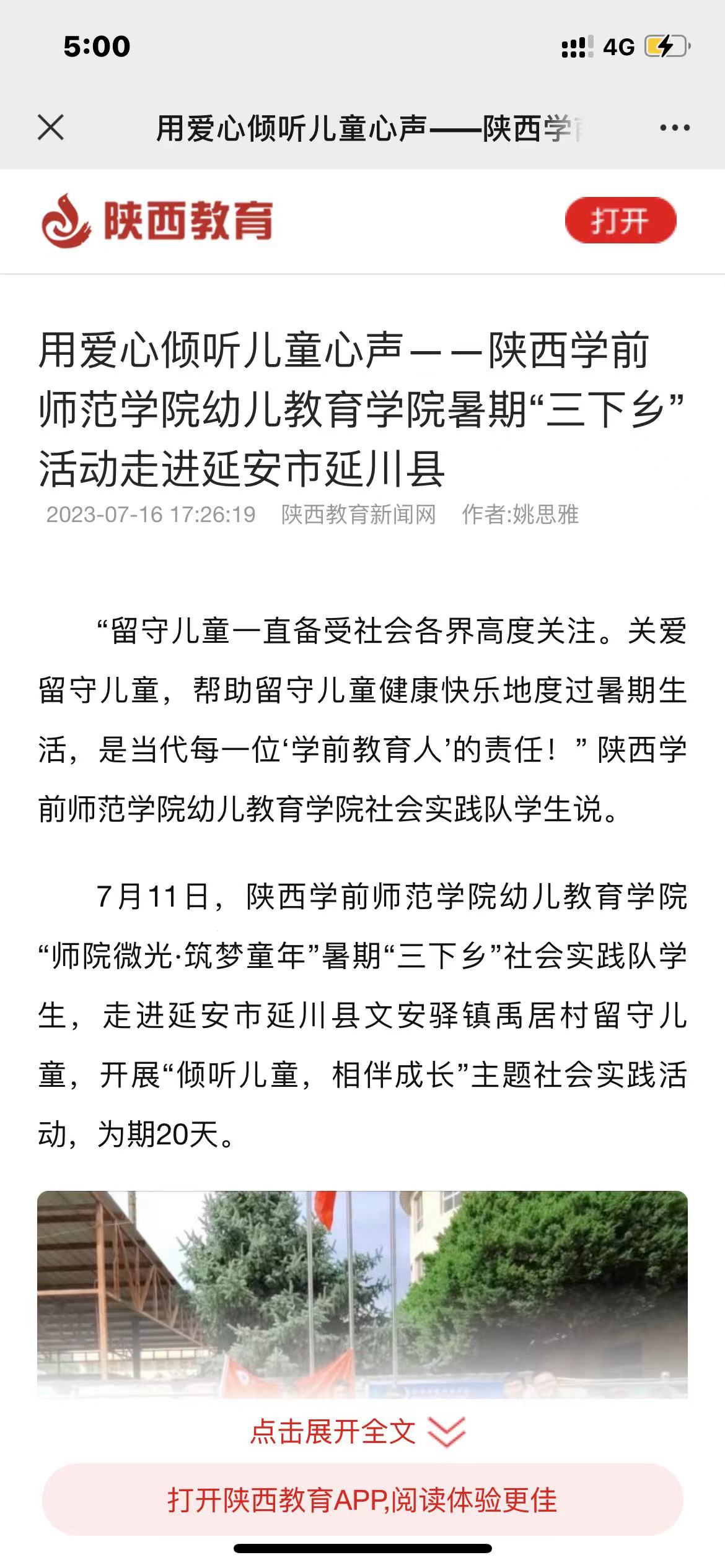 5.7月16日《陕西教育新闻网》用爱心倾听儿童心声——陕西学前师范学院幼儿教育学院暑期“三下乡”活动走进延安市延川县