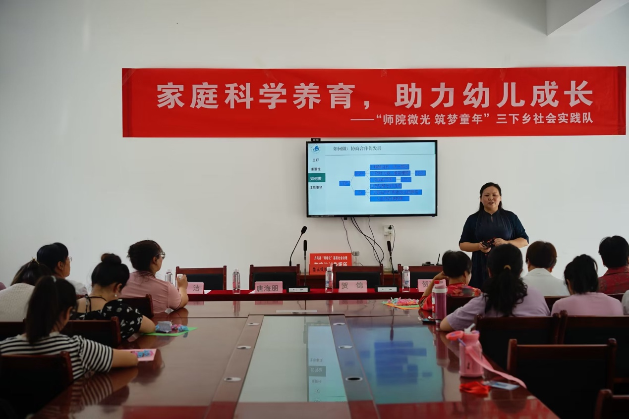 为提高孩子自身的情绪调节能力,助力营造乡村家庭教育的良好氛围。2023年7月19日,幼儿教育学院“师院微光 筑梦童年”社会实践丹凤队特邀陕西学前师范学院幼儿教育学院副教授贺琳霞及其团队赴棣花镇陈家沟村举办亲子活动及科学保教知识讲座。