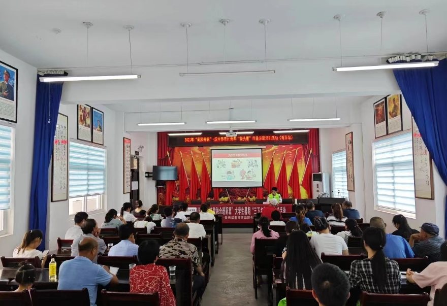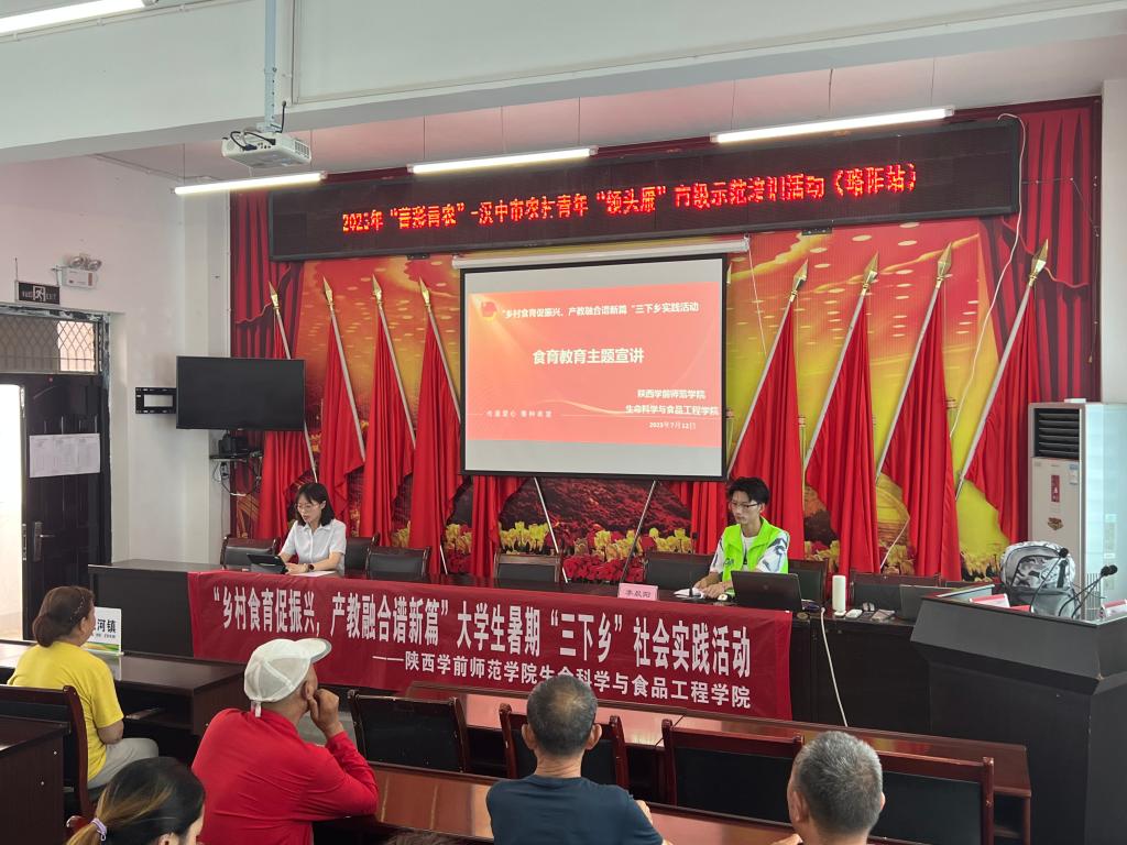 为深入贯彻习近平新时代中国特色社会主义思想,全面贯彻党的二十大精神,2023年7月12 日中午,生命科学与食品工程学院“乡村食育促振兴,产教融合谱新篇”“三下乡”实践队,在略阳县金家河镇政府开展食育教育讲座,实践队队员李晨阳面向60余位村民群众,通过现场授课及讲解,让村民们了解了食育的重要性,以及如何践行食育教育。本次活动由略阳县团县委、金家河镇团委和陕西学前师范学院生命科学与食品工程学院实践队共同承办。