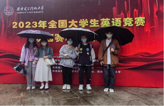 6月3日,入围省赛的5位选手赴西安电子科技大学参加了2023年全国大学生英语竞赛陕西赛区复赛,虽然大雨滂沱,选手们按时到达比赛场所,沉着冷静,认真答卷,最终5人均取得了陕西赛区复赛一等奖的好成绩。同时外国语学院徐金鑫同学、文学院杨乐怡同学脱颖而出,将代表参加2023年8月2日—7日在银川举行的全国大学生英语竞赛总决赛。