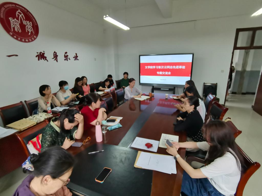 6月16日下午,文学院党委在博文楼A211会议室召开“学习张汉云同志先进事迹”交流会,由学院党委书记杨阳主持。中文系教师郭禹含、大学写作部教师张智虎、大学语文教学部教师胡舒依分别在会上作了交流发言,表达了对张汉云同志的缅怀之情和崇敬之意,并表示要向张汉云同志学习,静下心来教书,潜下心来育人,努力成为学生爱戴、家长信任、人民满意的优秀教师。杨阳书记在总结时强调,“教师是教育的根本,师德是教师的灵魂”,并希望全体教师以张汉云同志为榜样,牢记为党育人、为国育才的使命,不忘立德树人、教书育人的初心,积极弘扬爱岗敬业、为人师表、无私奉献的崇高品德,以言传身教,引领和带动广大学生,推动“两代师表 共同塑造”取得实效,在平凡的岗位上努力做出不平凡的贡献。