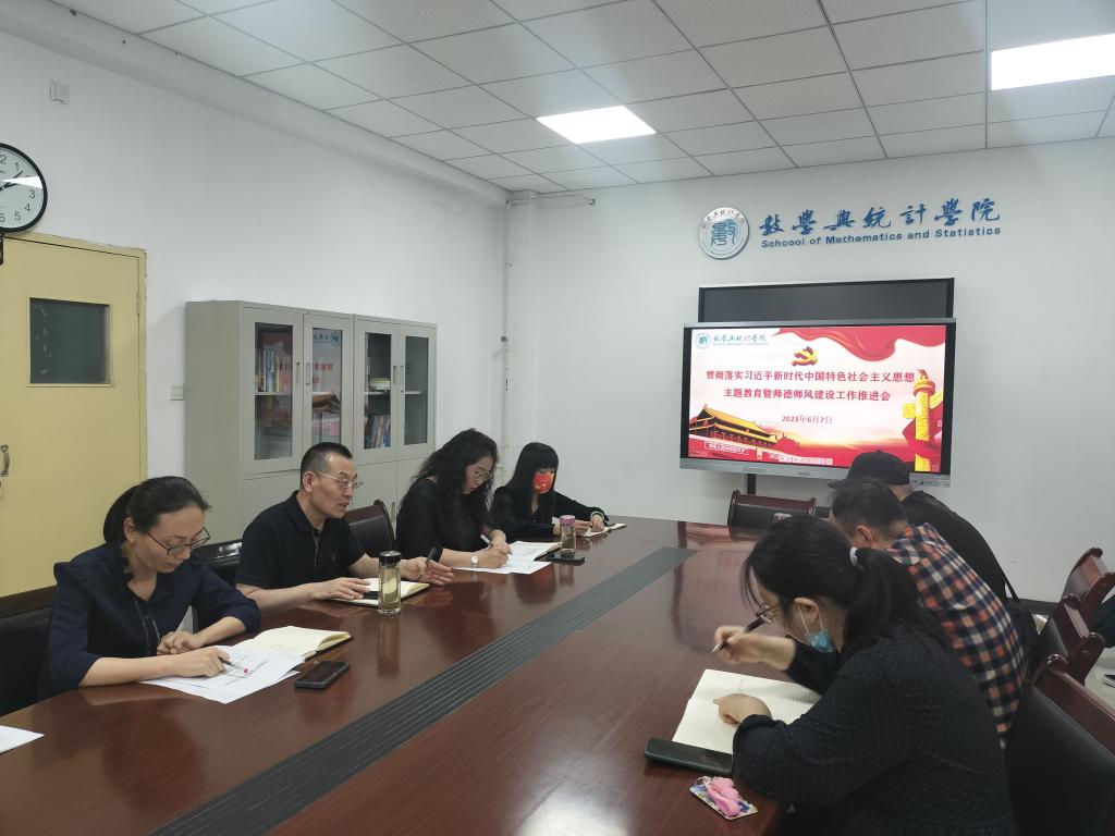 为深入开展学习贯彻习近平新时代中国特色社会主义思想主题教育,注重把主题教育同师德师风建设工作紧密结合起来,扎实推进习近平新时代中国特色社会主义思想入脑入心、见行见效。6月7日数学与统计学院召开贯彻落实习近平新时代中国特色社会主义思想主题教育暨师德师风建设工作推进会。