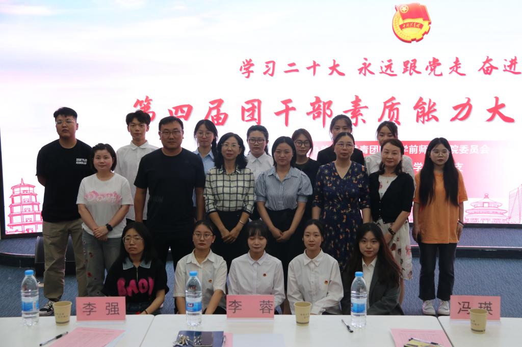 为深入学习贯彻习近平新时代中国特色社会主义思想和党的二十大精神,不断提升团干部思想政治工作的理论水平、专业素养和工作能力,团结引领广大青年奋进新征程、诠释新使命、创造新业绩,2023年5月18日,由校团委主办,信息工程学院团总支承办的“学习二十大、永远跟党走、奋进新征程”第四届陕西学前师范学院团干部素质能力大赛决赛在积学楼A1成功举行。大赛邀请校团委书记李蓉、马克思主义学院冯瑛副教授、音乐学院党委副书记刘蓉辉、外国语学院党委副书记侯文斌、体育学院党委副书记李强、生命科学与食品工程学院学工办主任高甜甜六位老师担任评委,信息工程学院党委副书记黄薇以及各学院学生团干部代表现场观摩比赛。