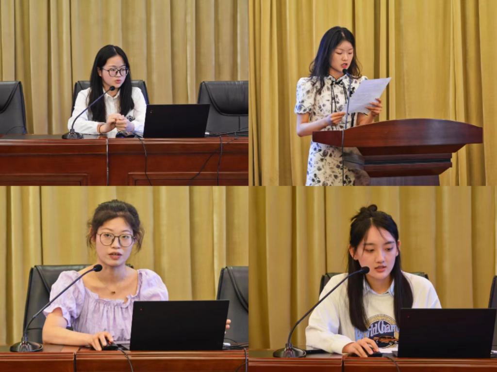考研学生代表吴洋洋、石小涵、孟骊帆、方政琪、饶娟娟、钟楠作为“考研之星”代表依次发言并分享各自的考研经验;她们将自己成功上岸的考研学习经历和考研技巧进行了分享,并从复习方法、时间规划、院校选择与心态调整等方面为学弟学妹提供了很好的建议。石小涵同学做为成功申请海外研究生的代表,给学弟学妹们进行了海外硕士申请的经验分享,并且表达了对母校、老师和同学的感恩和不舍。