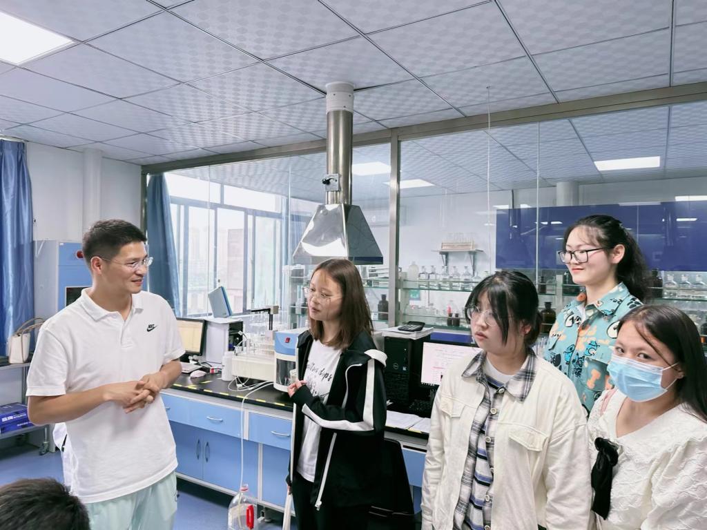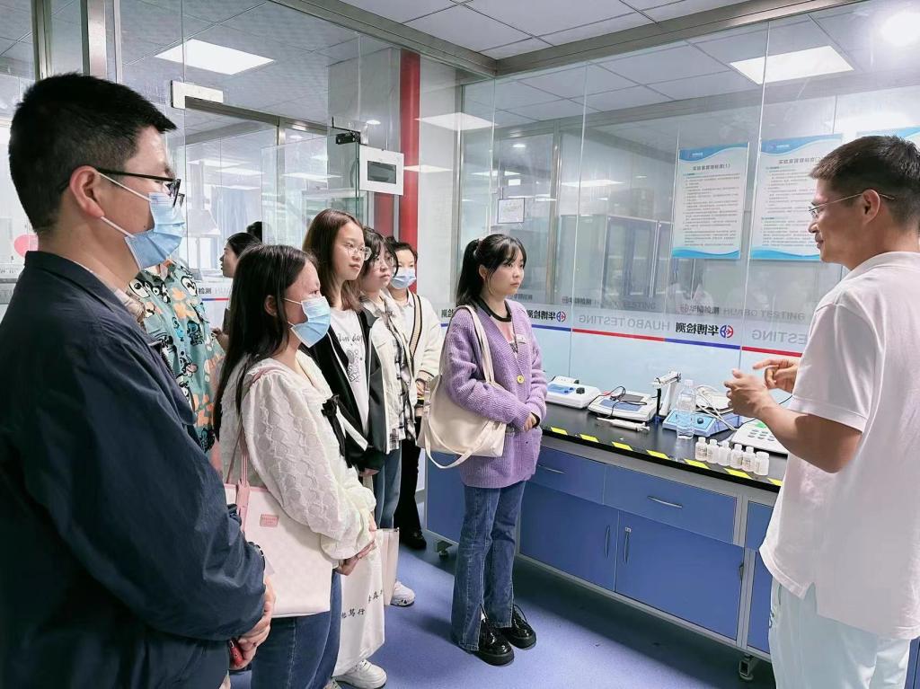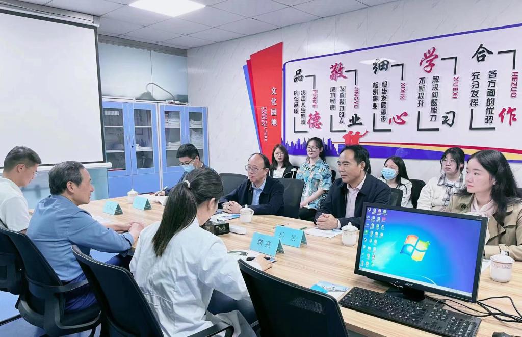 为贯彻落实全国全省2023届普通高校毕业生就业创业工作会议精神,对接企业用人需求,拓宽毕业生就业渠道和资源,全力促进毕业生更加充分更高质量就业,2023年5月31日下午,副校长唐宏带队化学化工学院赴陕西华博检测技术有限公司开展访企拓岗专项行动,化学化工学院党委书记杨泉、副书记彭晓江、毕业班辅导员任洁,以及六名毕业生随行。陕西华博检测技术有限公司总经理杨定友、高级工程师牒燕、屈小科对陕西学前师范学院师生的到来表示热烈欢迎,并与师生进行了深入交流。