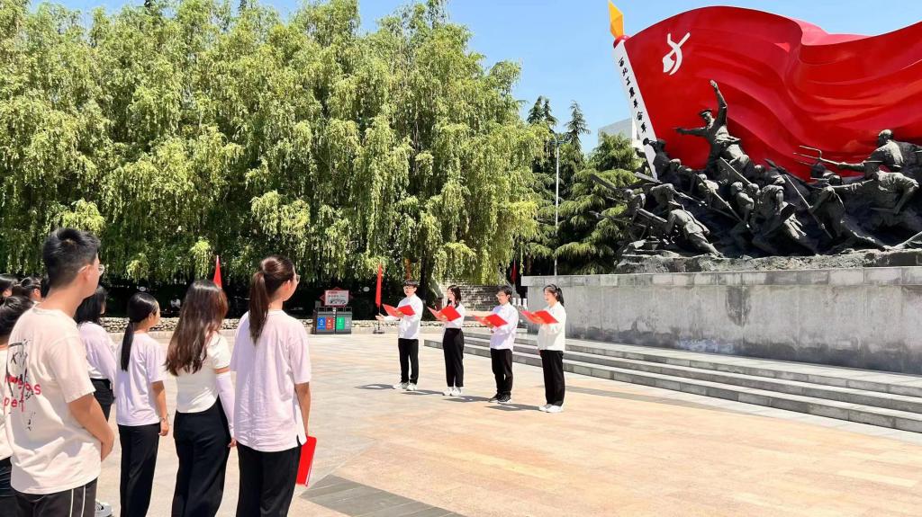 英雄舍生洒热血,后辈缅怀念忠魂。党员师生们首先来到渭华起义烈士纪念碑前,全体肃立,向烈士纪念碑鞠躬致敬,共同缅怀在渭华起义中英勇献身的革命先烈。全体党员师生面向鲜红党旗,共同重温入党誓词并庄严宣誓。大家一致表示,要学习革命先烈恪守信念、敢于斗争、不怕牺牲的革命精神,不忘初心、牢记使命,继承先辈遗志,赓续红色血脉,在新时代新征程上踔厉奋发、勇毅前行。