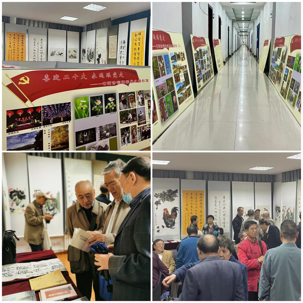 翰墨飘香,谁挥彩笔绘春色;国续新篇,我唱欢歌颂党恩。本次“学习二十大 奋进新征程”书画诗词摄影展报名参展作品达300余幅(首)。参展书法作品涵盖了行、草、隶、篆、楷五种书体,笔画细腻流畅,字体刚劲有力;国画作品别具匠心,栩栩如生;摄影作品构图巧妙,色彩亮丽;诗词作品意境深远,引人入胜。参展的每一幅作品都展现出了较高的艺术水平和昂扬向上的精神风貌。开幕式后,按照活动安排,与会人员参观了作品展览并开展笔会交流。