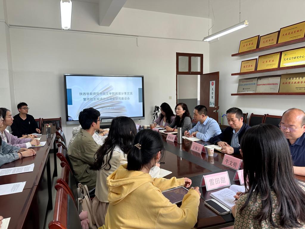 会上,文学院党委书记杨阳首先介绍了本次活动的背景和意义,鼓励学生以本次活动为契机,争做“爱阅读、善表达、勤思考、肯实践”的文学院优秀学子。接着,文学院14位师范生结合教育部等八部门印发的《全国青少年学生读书行动实施方案》,敞开心扉,分享各自的阅读情况,以及读书的收获与体会,同时讲述个人阅读中出现的碎片化时间导致浅阅读、短视频侵占阅读时间、阅读经典不易理解、个人偏好制约阅读广度等诸多困惑。学校宣传部、图书馆和学院的各位老师结合阅读经历与工作分工为学生逐一解惑,并从自身的角度阐释了读书的重要意义。最后,中国教育报推动读书十大人物、文学院院长牛文明教授对师范生阅读提出殷切期盼,“永怀高远之志,为中华民族伟大复兴而读书;常怀敬畏之心,汲取中外优秀文化精华。在阅读中遇见自己、遇见家国、预见未来。通过自己的阅读示范,为学生蓄能,为生命燃灯”。通过师生交流和老师的谆谆教诲,参会学生表示,读书不但是提升自我、浸润心灵的途径,更是师范生担负起未来教师神圣使命与担当的迫切需求,他们将坚持阅读,努力为祖国播下更多“读书的种子”。