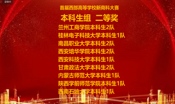 近日由教育部工商管理教育指导委员会指导,西部新商科实践教学创新与共事联盟主办,兰州大学承办的首届西部高等学校新商科大赛以线上形式成功举办。本届大赛于2022年12月底启动,共有来自西安交通大学、西北工业大学、兰州大学、兰州理工大学等69所西部高等院校的142支队伍报名参赛。经过激烈角逐,经济与管理学院财务管理专业黄静、马文花、肖若兰同学组成的陕西学前师范学院本科生1队荣获本科组二等奖。