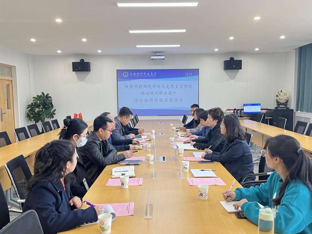 为贯彻落实中省关于高校毕业生就业工作的决策部署,深入落实高校毕业生就业工作“一把手”工程,加快健全高校毕业生市场化社会化的就业创业工作机制,为2023届毕业生开拓更多就业创业岗位和机会,4月6日上午,陕西学前师范学院马克思主义学院党政领导班子带队赴西安现代职业高中开展访企拓岗专项活动。辅导员和毕业生代表参加了活动。