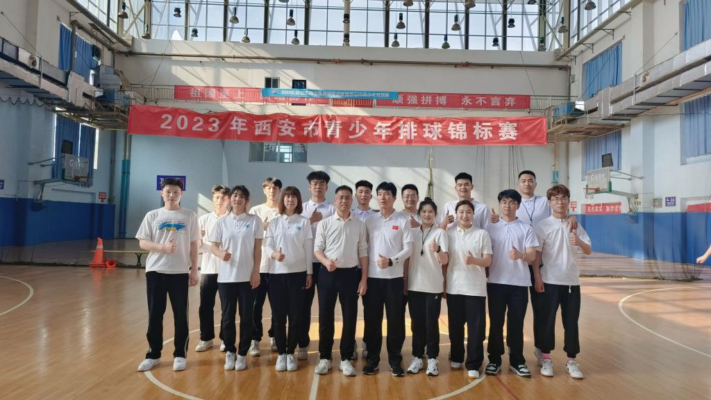 2023年3月31-4月2日,2023年西安市青少年排球邀请赛暨西安市青少年排球赛分别在曲江经济中心体育馆,西安市曲江第一中学体育馆和西安市青少年体校体育馆进行,共有来自全市22所学校36支队伍409名运动员,共计507人参加了本次比赛,体育学院副院长卫荣辉教授担任本次比赛的副裁判长,20余名同学担任了裁判工作。